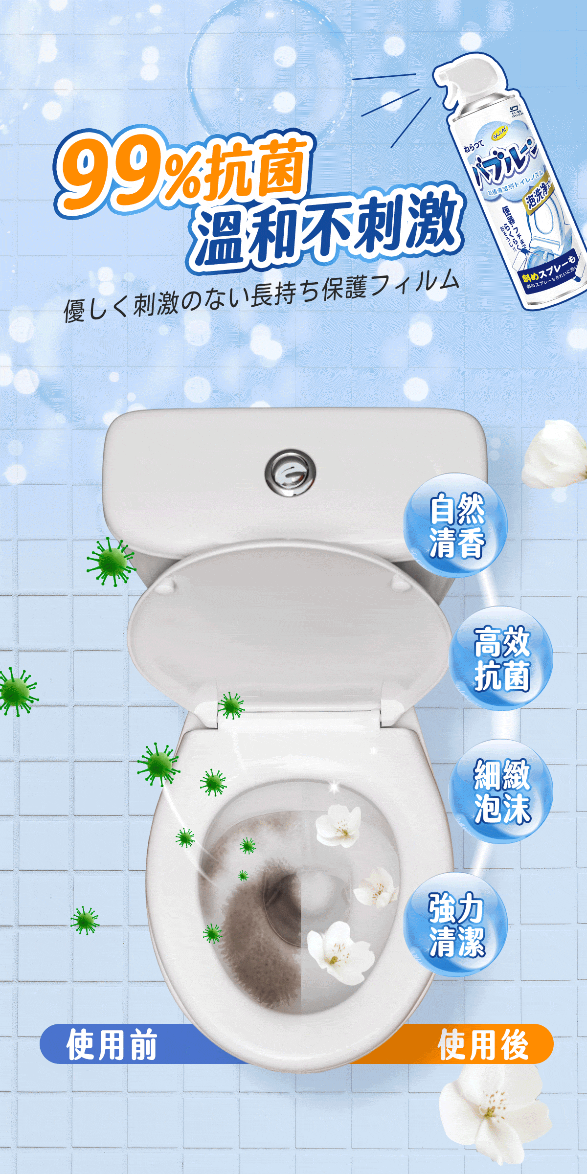 20分鐘前雪泡淨浴廁清潔慕斯 ,馬桶不刷也能亮 , 浴室清潔一瓶搞定 - 【買五送三】【MokoClean雪泡淨】8入組,團購好友分享 免運 NT$1299